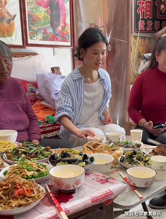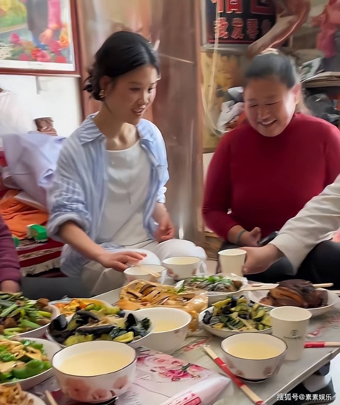 饭上桌以后,都在等大衣哥拿筷子开吃。