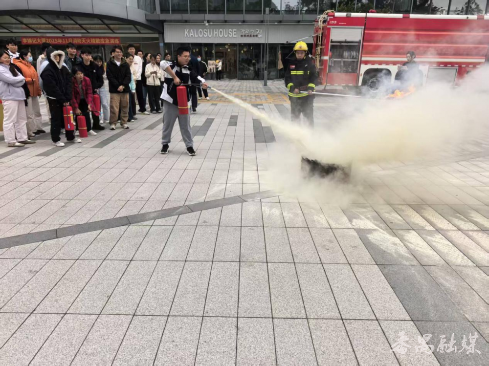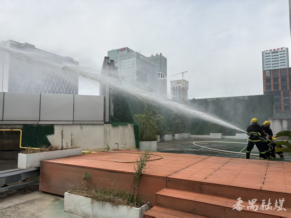 在李锦记大厦举行的演练当中,模拟写字楼突发火情,楼层烟雾迅速蔓延,物业工作人员立即启动应急预案,组织企业员工用湿毛巾捂住口鼻、低头弯腰,沿安全通道有序疏散至指定安全区域。消防救援人员接报后迅速赶到现场,开展搜救和火灾扑救。在随后的灭火器实操环节,企业员工在消防教官的指导下轮流上场,亲身体验了如何正确使用灭火器扑灭明火。“以前只在电视上看过,今天自己动手操作一遍,心里就有底了!”一位刚入职不久的企业员工说。